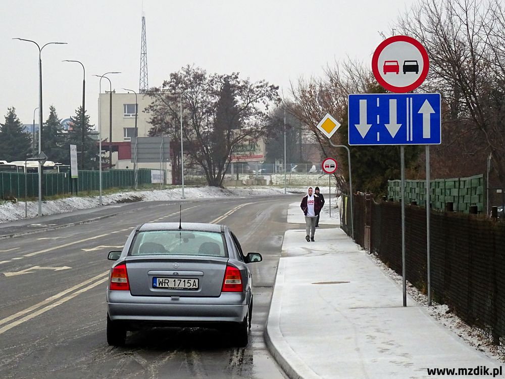 Poszerzona ulica Wjazdowa obok zajezdni MPK.