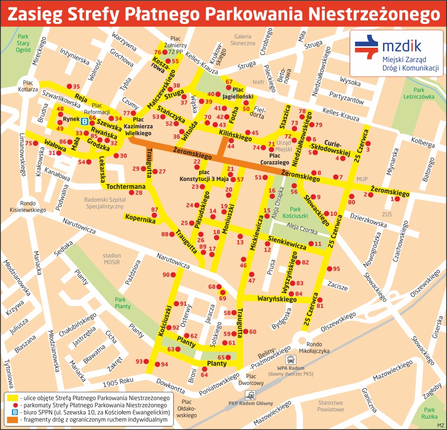 Od 2 stycznia 2008 roku w centrum Radomia istnieje Strefa Płatnego Parkowania Niestrzeżonego. Obejmuje