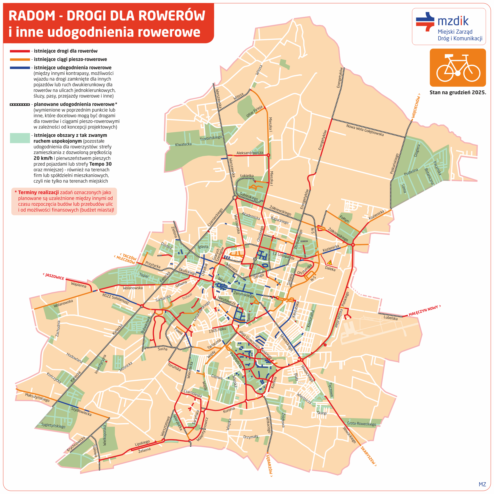 - rowerowa mapa Radomia Bractwa Rowerowego (MZDiK nie odpowiada za treść oraz aktualizację tej mapy).